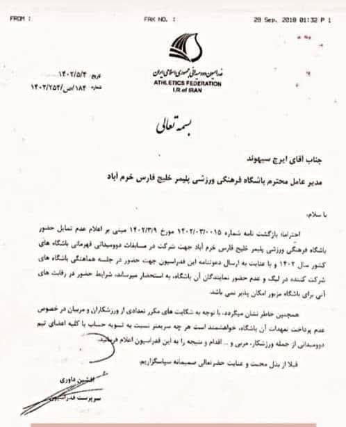اختلافات کار دست ورزش استان داد/مخالفت فدراسیون دوومیدانی با تیم داری لرستان در لیگ برتر دوومیدانی ایران